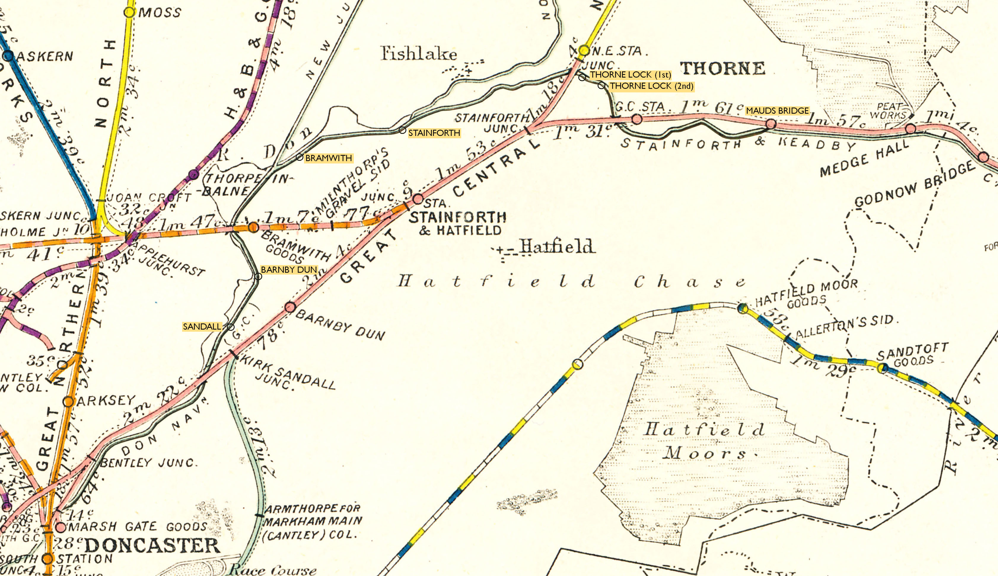 Mauds Bridge; Thorne; Thorne Lock (01/11/1859); Stainforth; Bramwith; Barnby Dun; Sandall (09/1859);